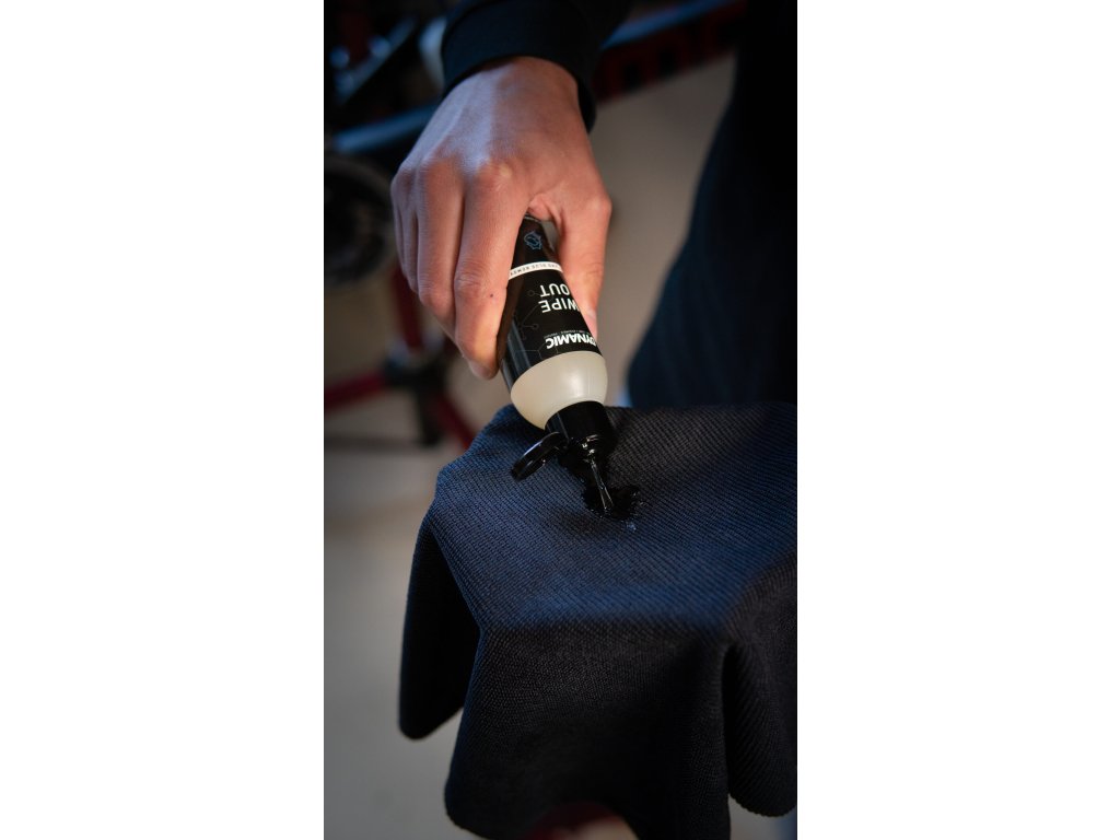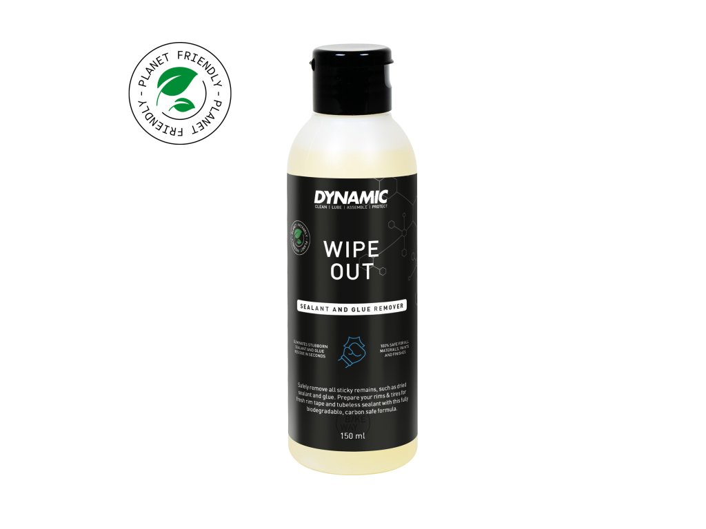 Dynamic Wipe Out je biologicky odbouratelný odstraňovač zaschlého bezdušového tmelu, lepidla a mastnoty, který zanechá ráfky i pláště perfektně čisté a připravené na novou montáž. Díky silnému, ale šetrnému složení snadno odstraní i voděodolná maziva, olej, vosk nebo jinou špínu, aniž by poškodil lak či povrchové úpravy. Je vhodný pro použití na hliník, ocel, titan, karbon, plast, pryž i těsnění. Přípravek je vodou oplachovatelný, nezanechává zbytky a funguje i jako extrémní odmašťovač.