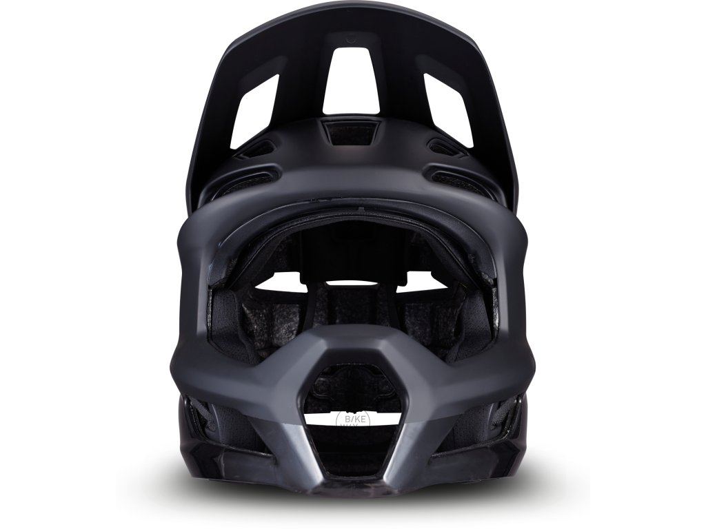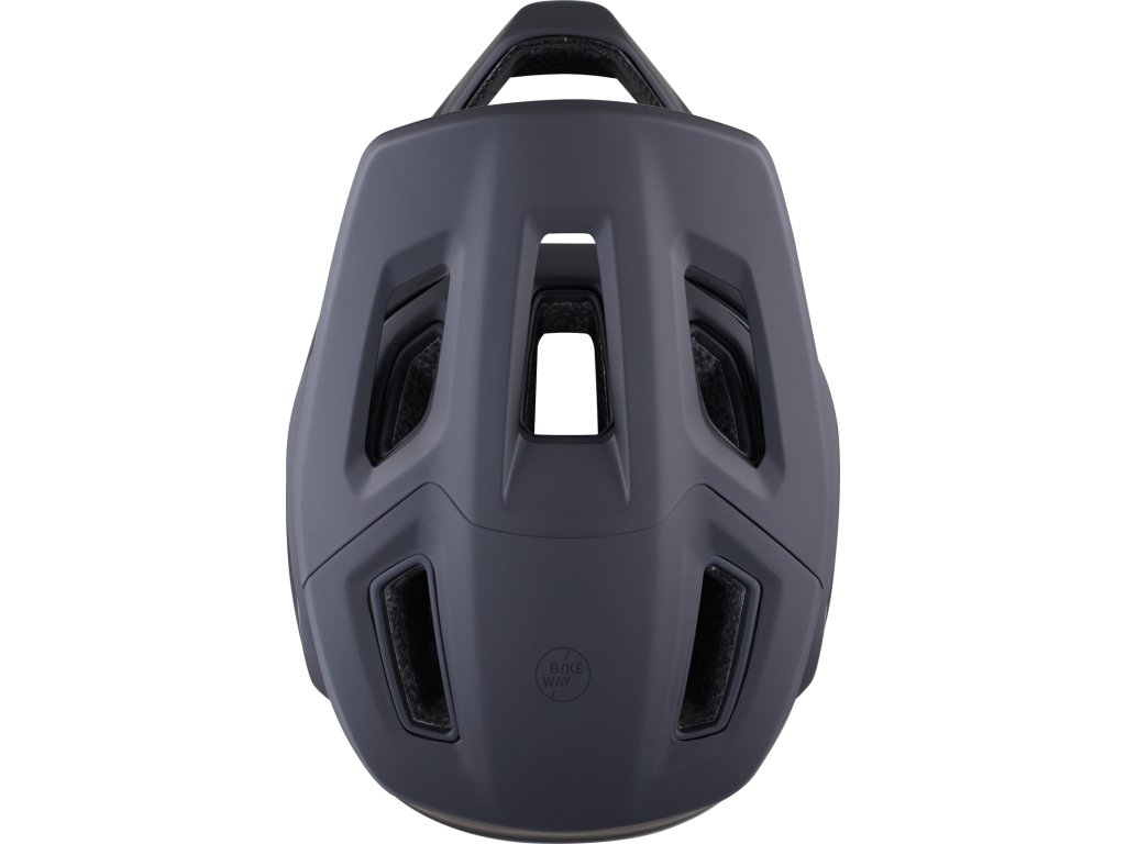 - Integrovaný pevný štítek je odnímatelný a poskytuje široké zorné pole a zároveň chrání před nečistotami na trailu.