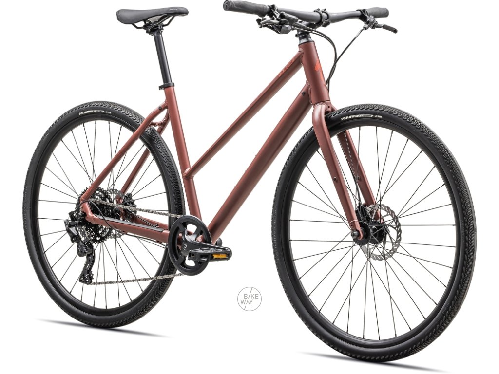 - Specialized A1 Premium Aluminum, Fitness Geometry, butted tubing, internal cable routing, flat-mount disc, quick-release, Plug + Play rack/fender mounts