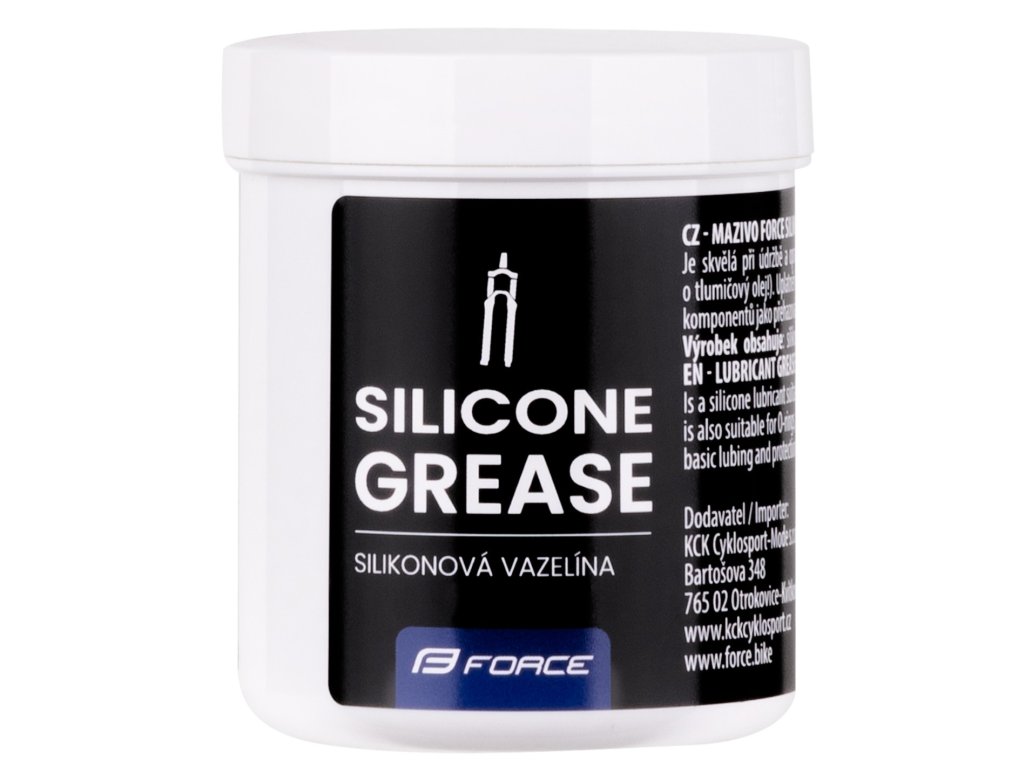 Vazelína silikonová FORCE – dóza 100 g je silikonová vazelína určená pro šetrné a spolehlivé mazání citlivých částí jízdních kol i dalších mechanických komponentů. Díky silikonovému složení je materiálově neutrální, nepoškozuje pryž ani plasty a je ideální pro místa, kde běžná maziva nejsou vhodná.