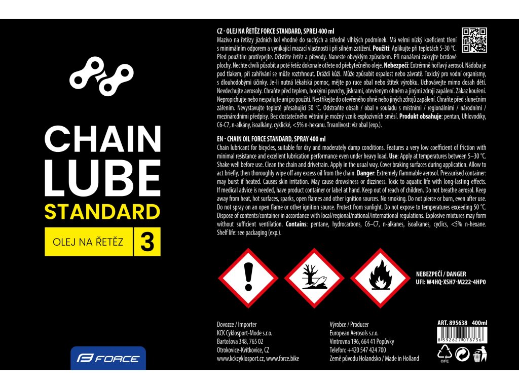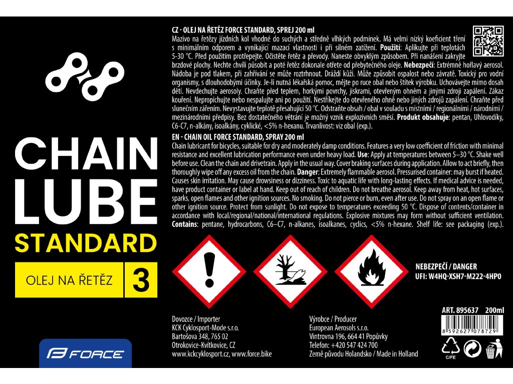 Shrnutí: Sprej FORCE STANDARD je praktické a spolehlivé mazivo pro každodenní cyklistiku. Udrží řetěz hladký, chráněný a připravený na další kilometry – ať už na silnici, nebo v terénu.