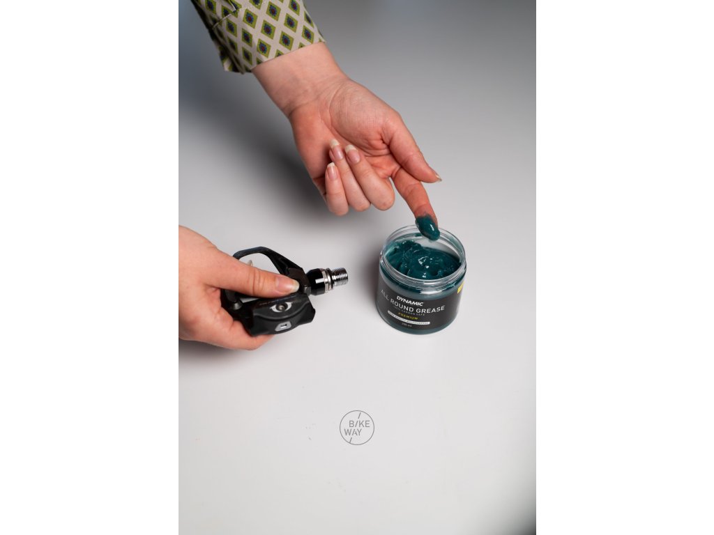Prémiová vazelína Dynamic Allround Grease je ideální volbou pro cyklisty, kteří své kolo nešetří. Díky vysoké odolnosti vůči extrémnímu zatížení a vlhkosti se perfektně hodí pro ložiska, středová složení i závity – zkrátka pro všechny namáhané spoje, které musí bezchybně fungovat i v nejnáročnějších podmínkách. Vazelína má silně přilnavé vlastnosti, zůstává tam, kde má, a chrání mechanické části před opotřebením a korozí i při dlouhodobém zatížení.