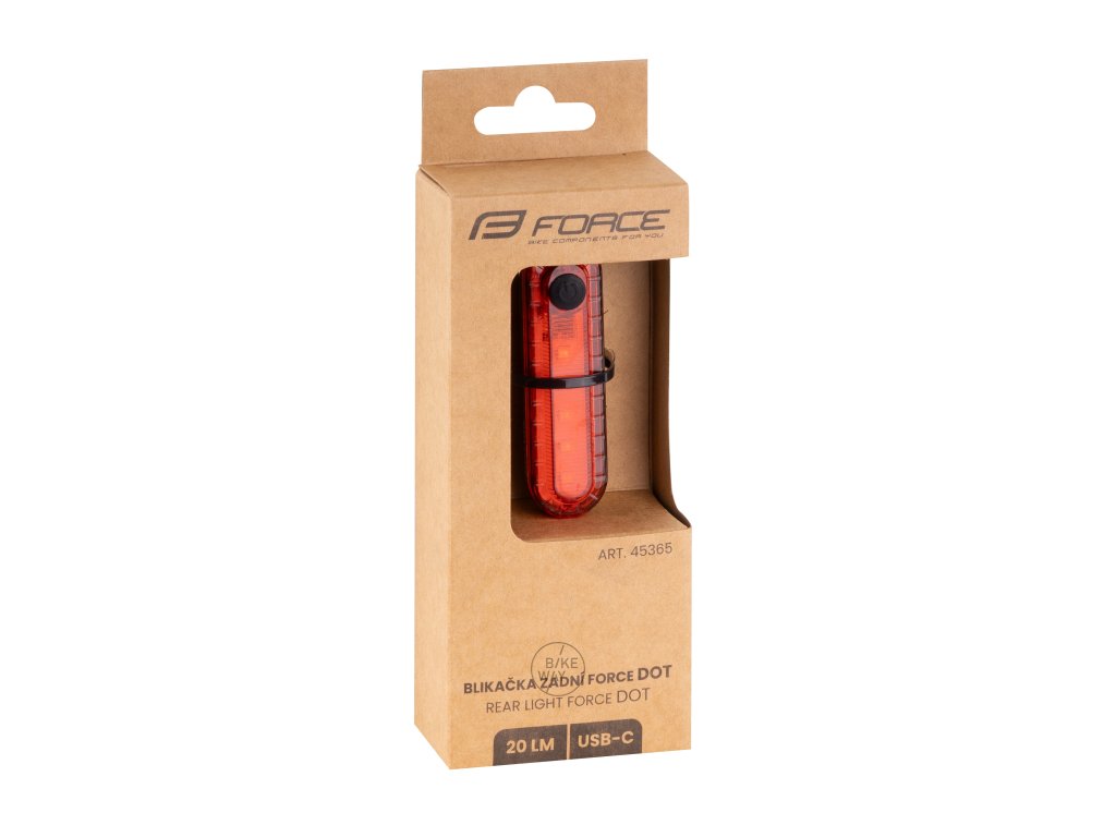 Blikačka zadní na kolo FORCE DOT 20LM, 5x LED, USB